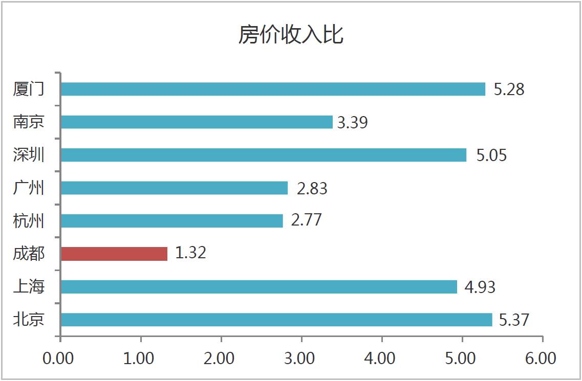 对城市的房价与收入进行对比,自然就应该通过房价收入比才能直观体现了。