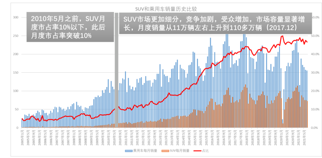 广汽三菱由广汽集团、三菱工业会社、三菱商事会社三方按照 5:3:2于2012年5月成立。因SUV相较于轿车而言,兼具视野、空间、性能等优势,自2008年后,国内SUV在渗透率、市占率、销量上均在不断提升,广汽三菱将产品也放到SUV市场上。时代红利下,广汽三菱也曾有过自己的“高光时刻”。