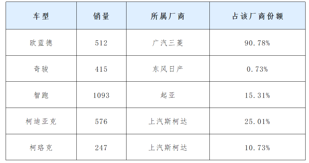 随着近几年新能源汽车渗透率的逐渐提高,广汽三菱在2020年推出 2020款祺智EV、2020款帕杰罗以及新劲炫三款产品。其中,2020款祺智EV采用新型纯电专属平台,但后续推出的车型在市场并未激起太大水花。以今年5月份为例,欧蓝德销量仍占到广汽三菱总销量的90.7%,远低于其他合资车单款车型30%以下的占比。