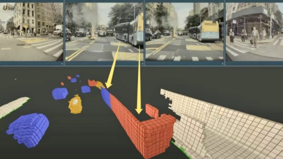 至此,Tesla FSD的第一步完成,通过BEV+Transformer生成了一张不带运动及轮廓信息的围绕车辆周边的100×100米局部地图。接下来,Occupancy Network通过将空间划分为一系列体素(voxel),对空间进行3D构建,从而形成类似于“积木堆积”式的三维空间表示,生成地图上物体的轮廓信息,让地图具备景深。