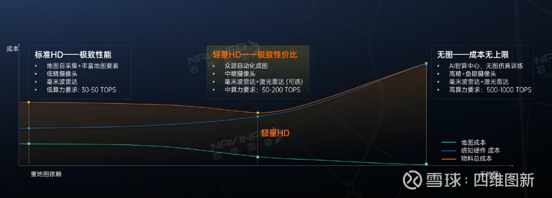 在激光雷达之外,高精地图为了跟上智驾的节奏,也推出了轻地图。轻地图,即量化的高精地图,同时融合了高精地图和传统导航地图的一些优点。在定位精度和信息丰富度上,轻地图免去了一些优先级不高的信息,以算法作为补充,来配合车企智驾的推进。