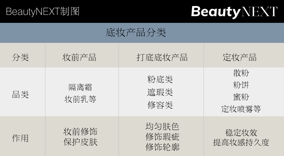 和色彩产品相比,底妆的子类目并不算多,但在整个妆容中的重要程度更高、覆盖面积更大。同时,底妆产品受众更广且消耗快,市场接受度更高。