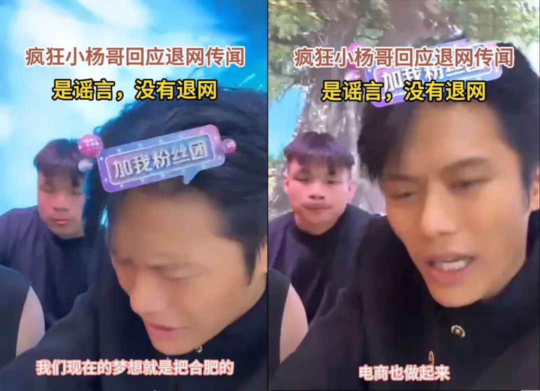直到10月23日,小杨哥对“退网”终于给出了一个明确态度:“那是谣言”,他表示,“我们的梦想就是把合肥的电商也做起来。我们现在不是在把我俩(小杨哥和大杨哥)做有多好,而是去把旗下这些达人、主播给服务好,把品牌给服务好,我们服务好他们,最终让他们去服务好他们的粉丝。”
