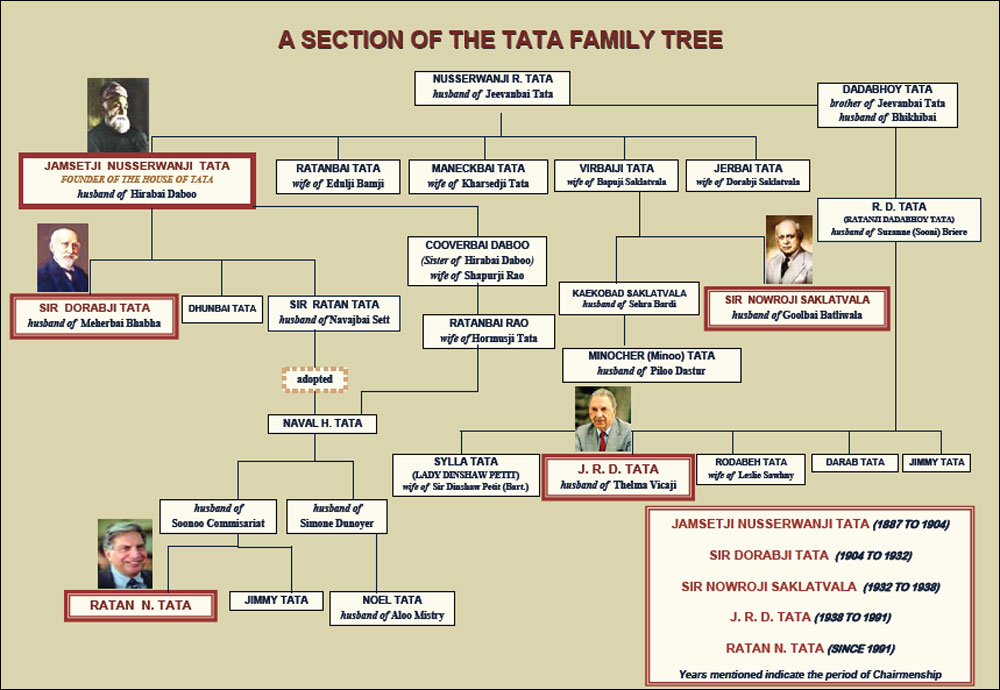 Tata家族早年来自波斯,属于帕西人,帕西人是公元8世纪从波斯迁居到印度古吉拉特的移民,后又扩散到孟买地区,大多是拜火教徒。他们在印度人口中的比例极小,与印度本地的其他民族相比,帕西人比较不受宗教和种姓制度的约束,思想开明,易接受新事物。