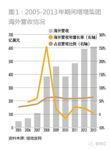 拉坦的全球化战略取得了非常不错的效果。塔塔集团的海外营收从2005年的47亿美元上升到2013年的607亿美元,同期海外营收占总营收的比例从27%上升到63%,2008年以来海外市场收入一直高于国内市场(图1)。