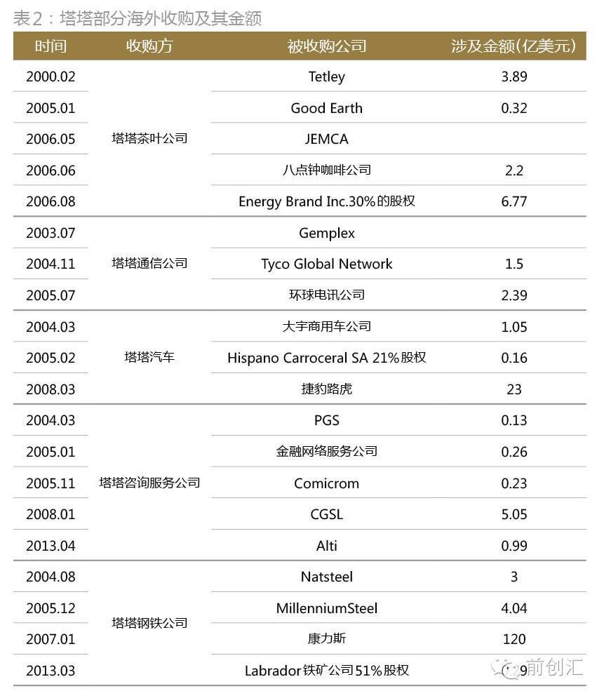 塔塔集团主要通过两张王牌来进行国际扩张,一是具有生产世界级优质产品的能力,二是国际并购。塔塔集团从2000到2007年短短的7年时间里,花费了近180亿美元在全球范围内收购了近30家公司,收购标的主要集中在欧美,其中71%分布在英国,21%在美国。