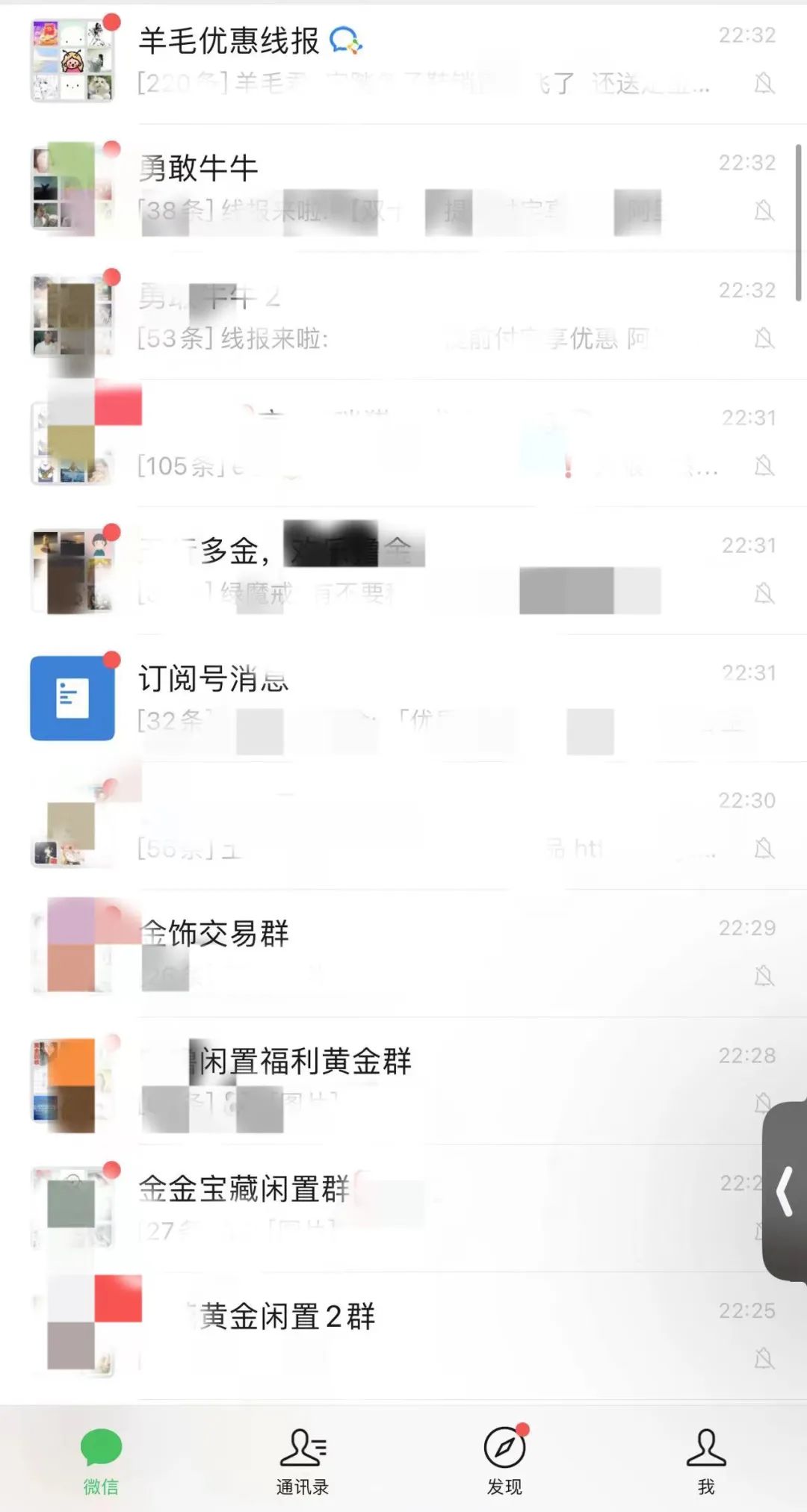 刘美丽已经加入了十多个黄金购买交流群。群里的成员来自天南海北。平日,成员们会在群里一起讨论金价,交流低价购金的经验。
