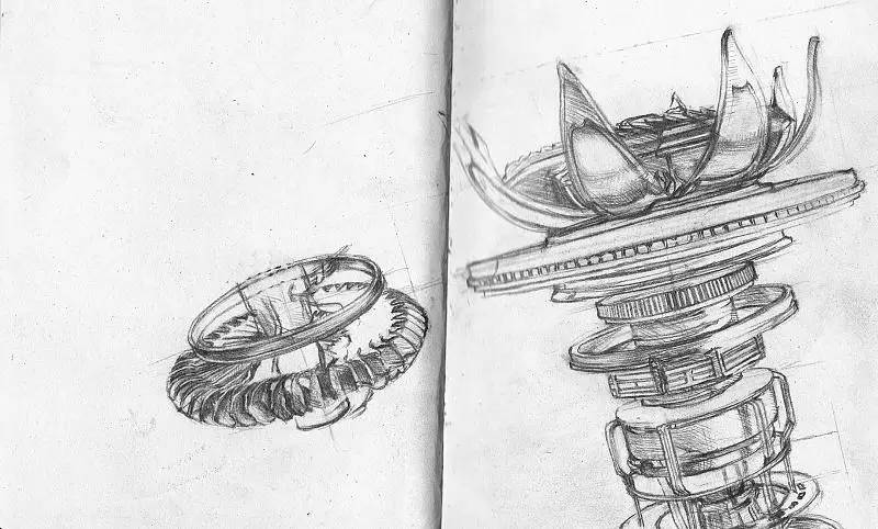 复杂的手稿,繁复的设计,最后才有了电影只出现了十几秒的画面。