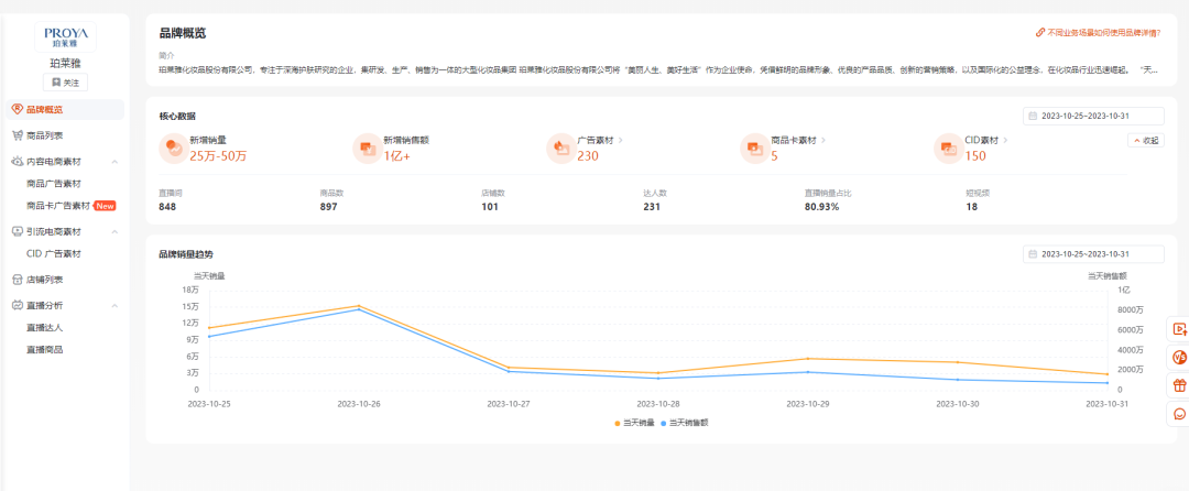 直播电商呈现出的另一个趋势,就是品牌自播时代全面开启,品牌自播和达人推广相辅相成,而不仅再是主播“一家独大”。“有米有数”《抖音电商双11预售期品牌直播热销榜》数据显示,10月20日-30日期间,GMV过亿的直播间中就有不少国货品牌,如珀莱雅、鸭鸭、韩束、五粮液、华为等。