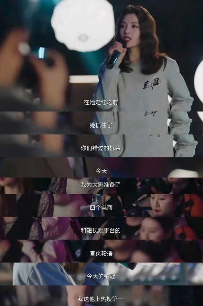 前四集除了对于国货老品牌日薄西山的描写外,《我要逆风去》还将镜头对准当下的电商行业现状,五花八门各出奇招的主播网红带货现场、随时更新的销售额统计大屏、品牌方和带货主播联合的炒作戏码、实业和金融之争都能对照现实,展现电商行业和热搜套路的台词之犀利,也能找到些当年《怪你过分美丽》的深挖娱乐圈内幕的快感。