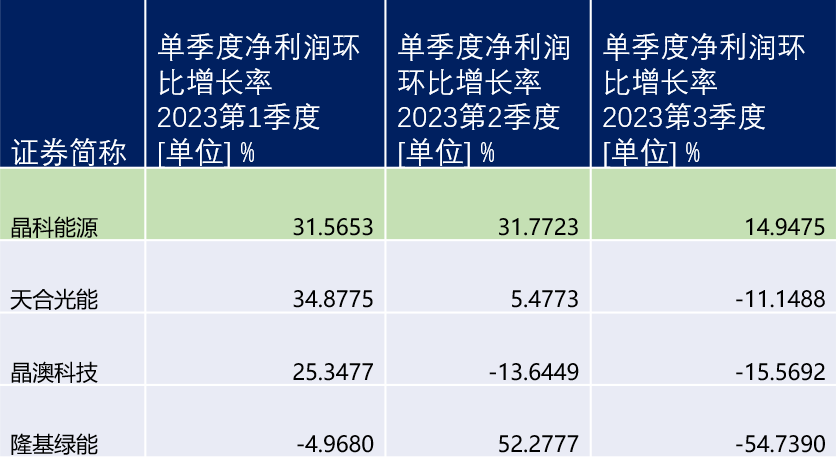 第二,隆基、晶科、晶澳、天合,一直是头部一体化组件企业的TOP4。现在,晶科能源成为其中唯一一家连续三个季度净利润环比增长的企业。光伏行业产能过剩,组件价格急剧下跌的行情下,晶科能源居然实现了逆势增长。
