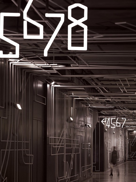 武汉的这家影院在整个布置手法上和南京那家十分相似。两者也都是以电影元素作为主题,不过比起声波,武汉影院选择的文字更具象些。而之所以选择文字是因为,电影源于剧本,而剧本就由文字组成。