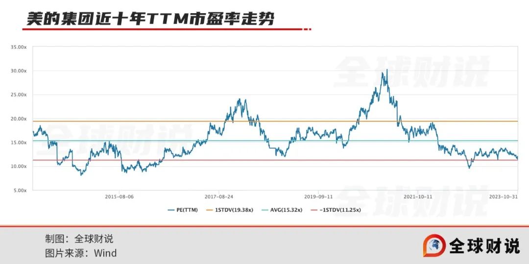 截至10月31日收盘,报52.92元/股,总市值3717亿元,TTM市盈率为11.34倍,处于10年以来的较低位。