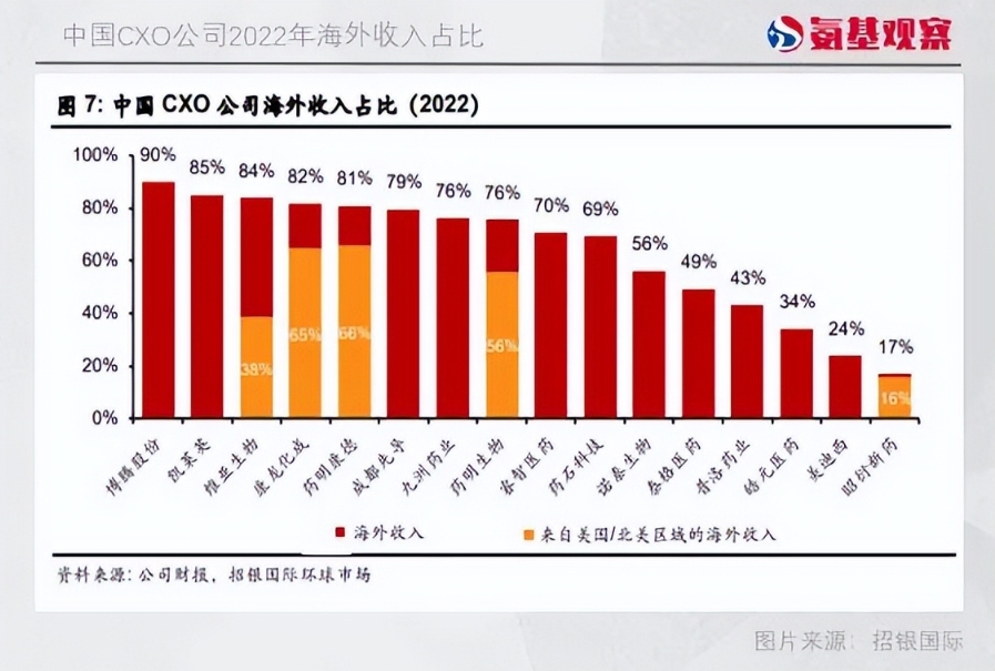 除了国内,全球医药融资和研发需求对于中国CXO业绩也有着重要影响。毕竟,中国CXO已经深度融入全球医药研发产业链,不少企业有超过一半年的收入来自海外。