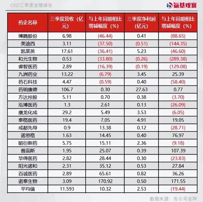 上半年CXO板块就已经初现颓势,到了三季度,业绩增速进一步下降。