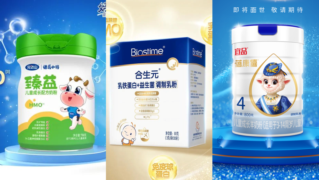 「合生元」推出「合生元HMO乳铁蛋白调制乳粉」,抢占国内首款HMO儿童营养品占位,产品采用5倍高含量的活性乳铁蛋白+益生菌+免疫球蛋白+乳桥蛋白组合。「宜品蓓康僖」推出「儿童羊奶粉4段」,是国内首款HMO儿童羊奶粉,在配方上还含有益生元和Bb-12益生菌、燕窝酸、DHA、ARA、牛磺酸和胆碱等。