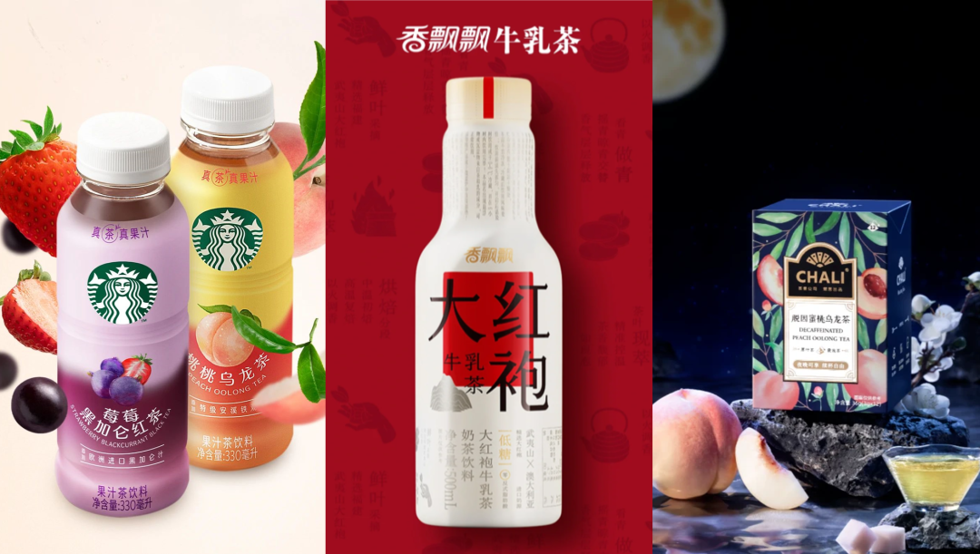 在包装茶饮中,「星巴克」推出「果汁茶」,产品灵感源自门店明星产品,真茶真果汁,扩大品牌即饮产品线。「香飘飘」和「康师傅」均推出「大红袍奶茶」,都采用武夷山大红袍和低糖配方,分别选用澳大利亚和新西兰奶源,值得长线关注。