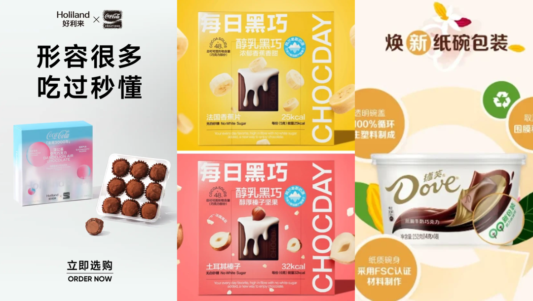「德芙」对国内碗装巧克力包装进行全线焕新,不再使用塑料包装,焕新纸碗包装的透明碗盖由100%循环再生材料制成,纸质碗身采用FSC认证材料制作,同时取消了围膜和底卡,预计每年可减少1600吨原生塑料的使用。