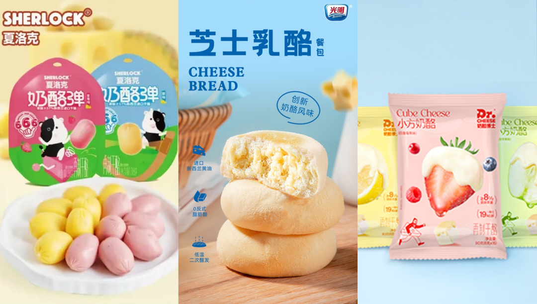 「光明」推出「芝士乳酪餐包」,内陷为满满芝士乳酪夹心,适配早餐、下午茶、加班等多重场景。「奶酪博士」推出新品「小方奶酪」,据品牌方介绍是第一块来自中国品牌、自己的工厂研发生产出来的小方奶酪,打破了海外品牌在此品类上的区隔。