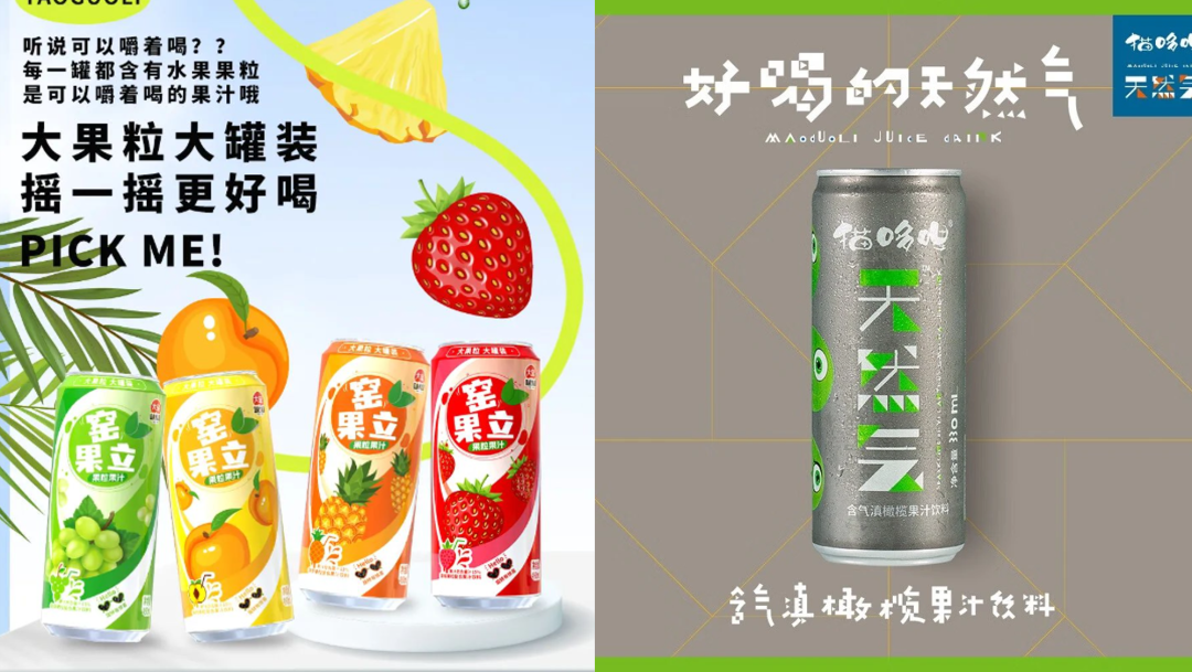 在果蔬饮料中,「大窑饮品」推出「窑果立」,产品含有水果果粒,主打嚼着喝果汁,旨在进军大果粒果汁市场。「猫哆哩」推出两款「天然气气泡果汁饮料」,为芒果和滇橄榄果汁,果汁含量分别为>55%和>45%,同时色香味100%来自原果,此前猫哆哩还推出同系列酸角汁含气饮料。