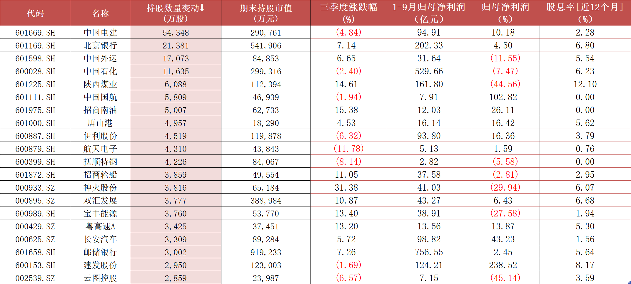北京银行(601169.SH)和中国外运(601598.SH)则分别录得区间涨幅7.14%和6.65%;同时排名险资增持股份数第五名的陕西煤业(601225.SH)三季度涨幅高达14.61%。