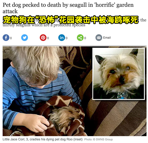 去年在英国,海鸥还啄死了一只无辜的小狗▼