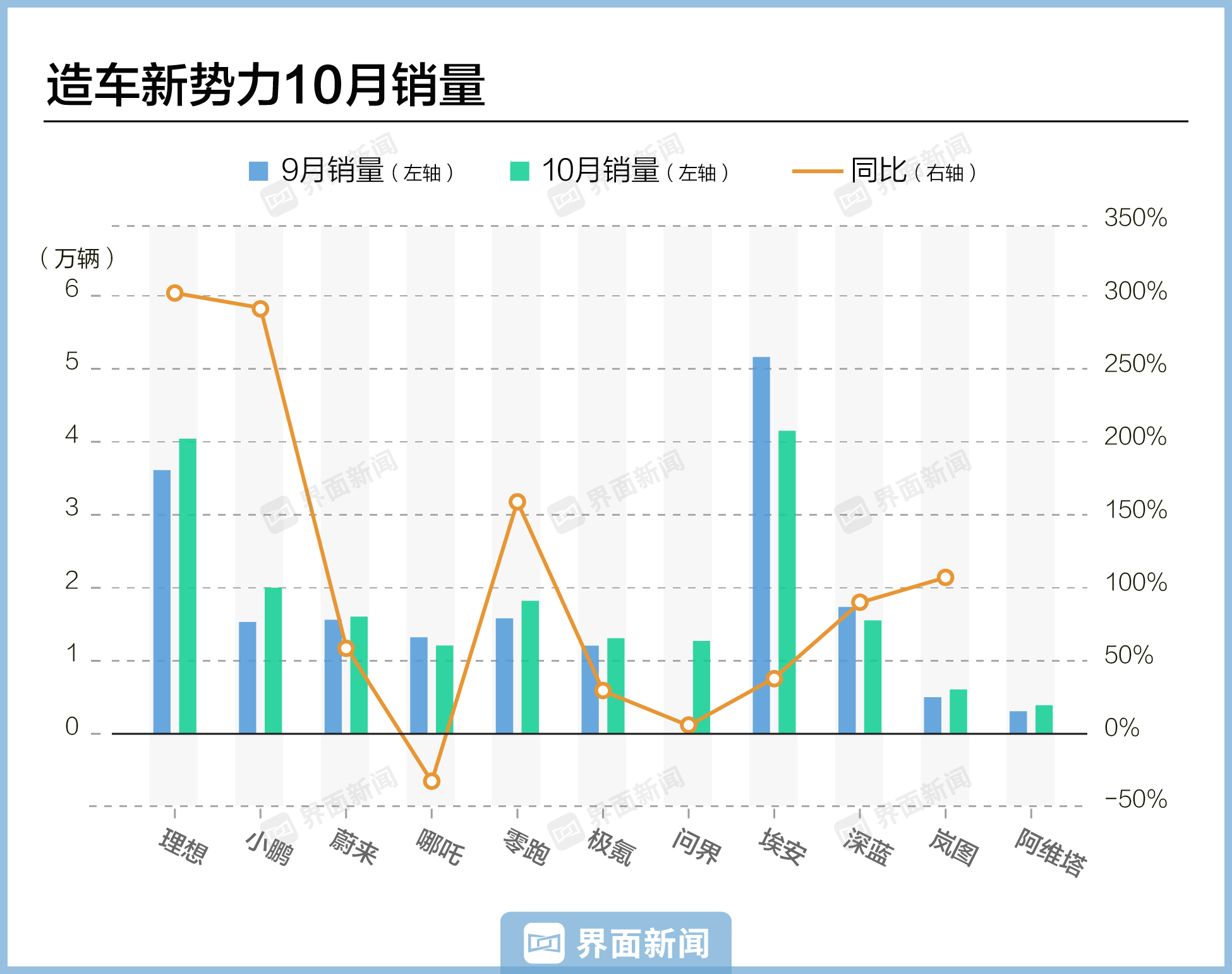 “金九银十”销售旺季,造车新势力的“银十”战绩显得更为出色。