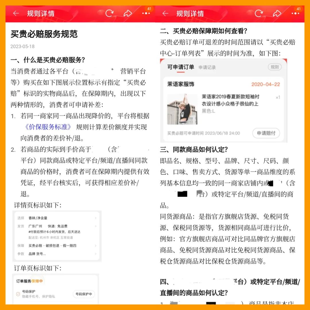 从某平台内买贵必赔“长达八大条”的服务规则来看,首先,买贵必赔的前提是要在保障期内,可退差的时间范围有限;