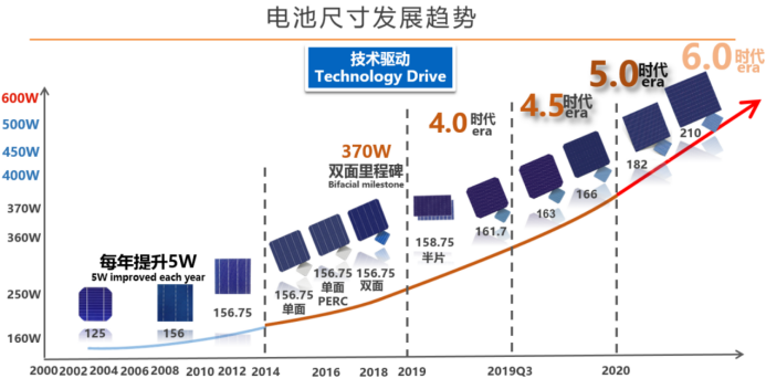 而在“去补贴化”的光伏平价时代对高功率组件需求日渐上涨的形势之下,原本统一的尺寸联盟开始瓦解。