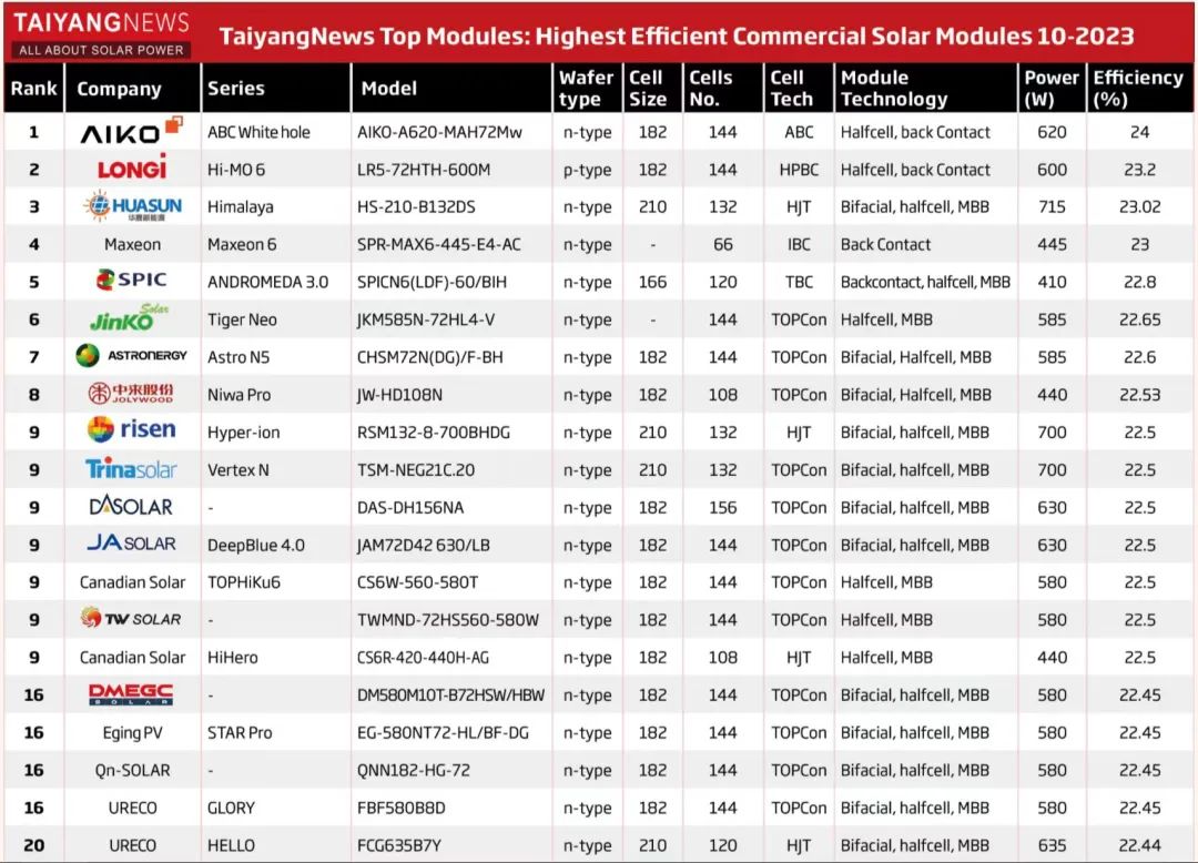 而在友商隔空交火之时,爱旭仿佛成了最大的赢家——爱旭独家的ABC技术,一步步从PPT变成了量产线、从行业“小众”工艺突然变成了主流技术、从过去那个名不见经传、饱受供应链价格困扰的电池小厂变成了高端组件市场价格的制定者、各类效率榜单的座上宾、各类奖项的常客……