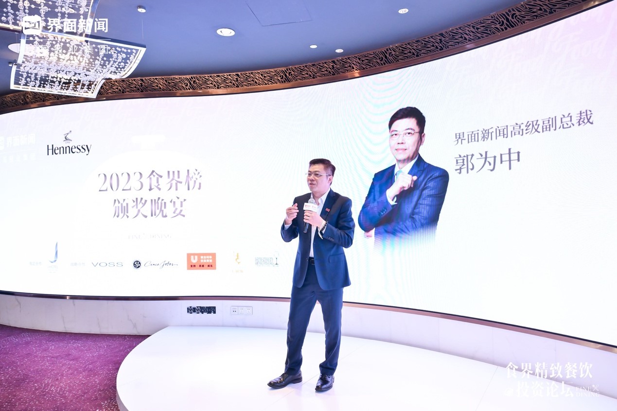 郭为中:尊敬的各位领导、各位嘉宾,女士们、先生们,大家晚上好!感谢大家在百忙之中来到“2023食界榜颁奖晚宴”,我谨代表上海报业集团|界面新闻全体同事,向各位的到来表示最热烈的欢迎与最诚挚的敬意!