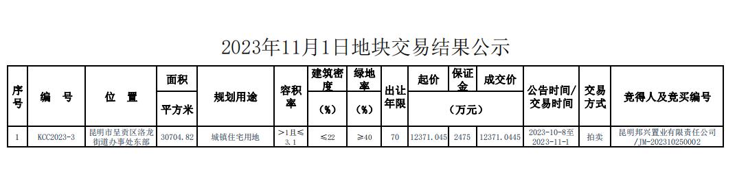 11月1日,四川邦泰集团旗下的子公司昆明邦兴置业有限责任公司以约1.24亿元的底价,竞得呈贡区洛龙街道办事处东部46.06亩城镇住宅用地,成交楼面价为1300元/㎡。至此,时隔3年,邦泰集团落下入昆第二子。