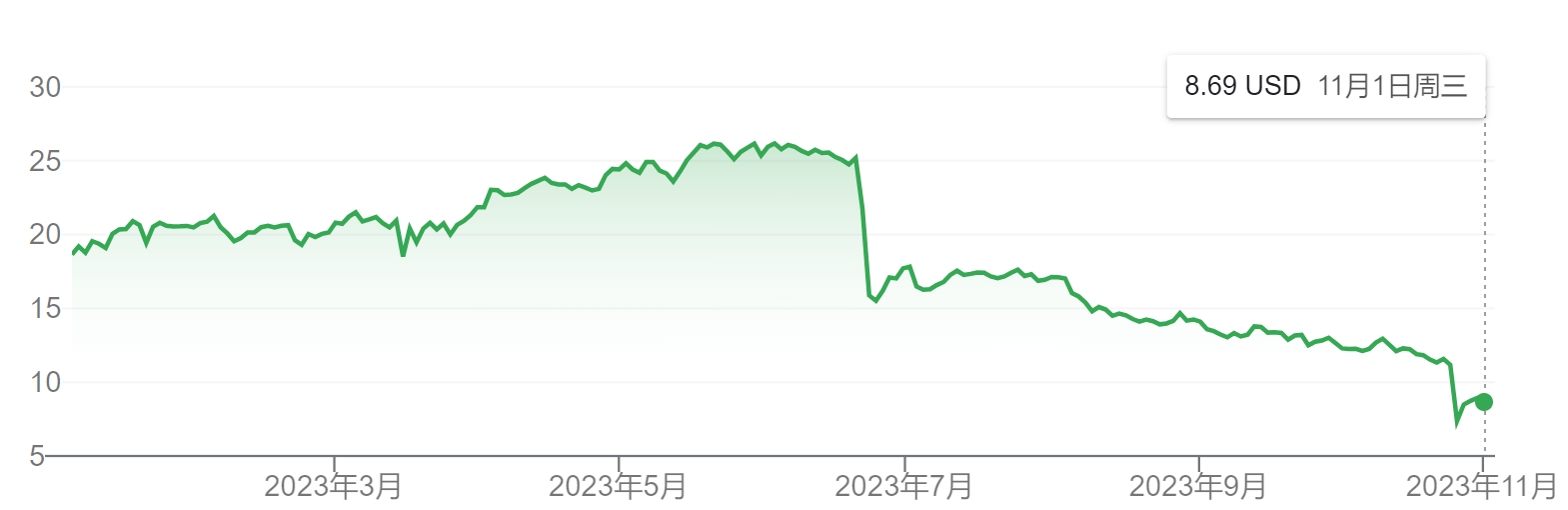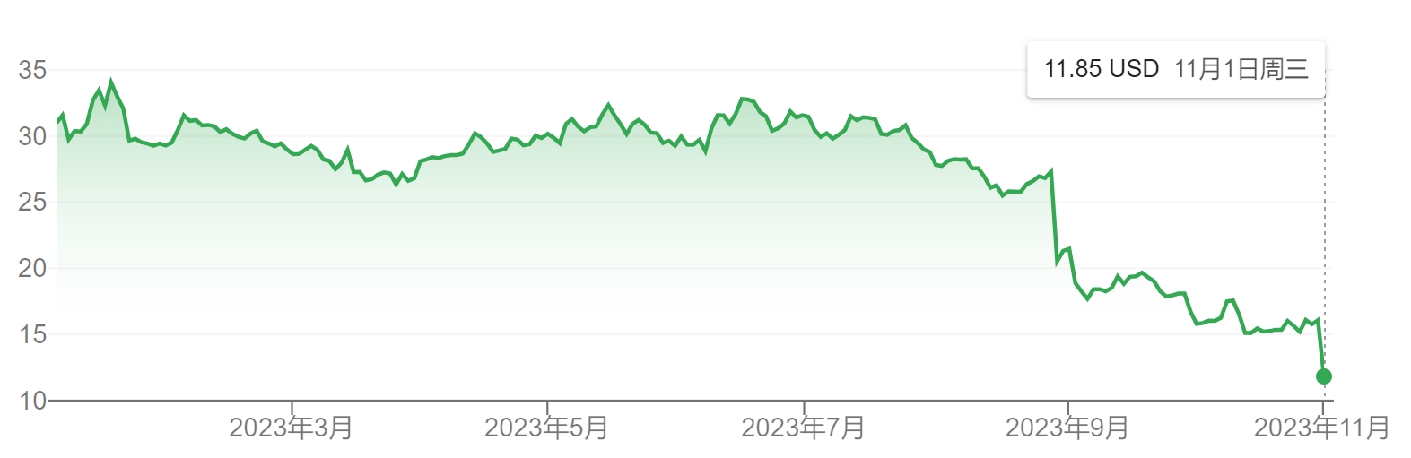 市场预料之外的资产减记,导致该公司当日股价大跌超过26%。截至当地时间11月1日收盘,沃旭能源报11.85美元/股,较年初股价累计下跌61.8%。