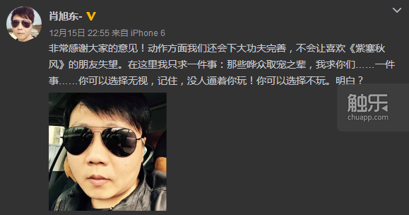 这些质疑声当然也传到了制作人处,不过对肖旭东来说,这些质疑也是意料之中。“好的东西我们接纳,比如说动作方面我们还会继续调整。没什么根据的喷,也没必要回应。”