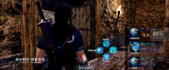 游戏主角的武艺主要有拳掌和剑法,在游戏的进行过程中会学到相当多样的武学套路,切换组合不同的武学套路会构成不同的连招,影响实战效果(这在12月战斗演示中也有体现),这种设定有些像当年可以“编辑连招”的《刀剑封魔录》。