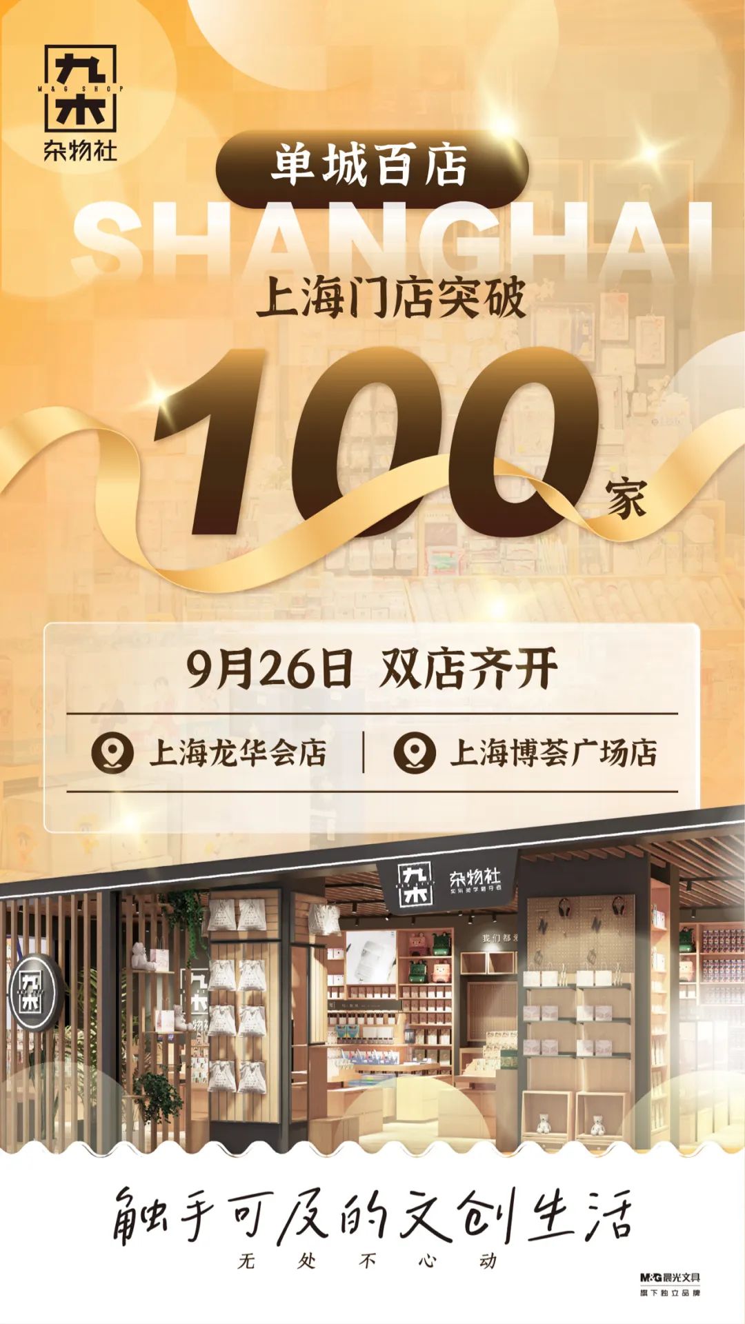9月26日,九木杂物社单城百店达成,上海地区门店突破100家。