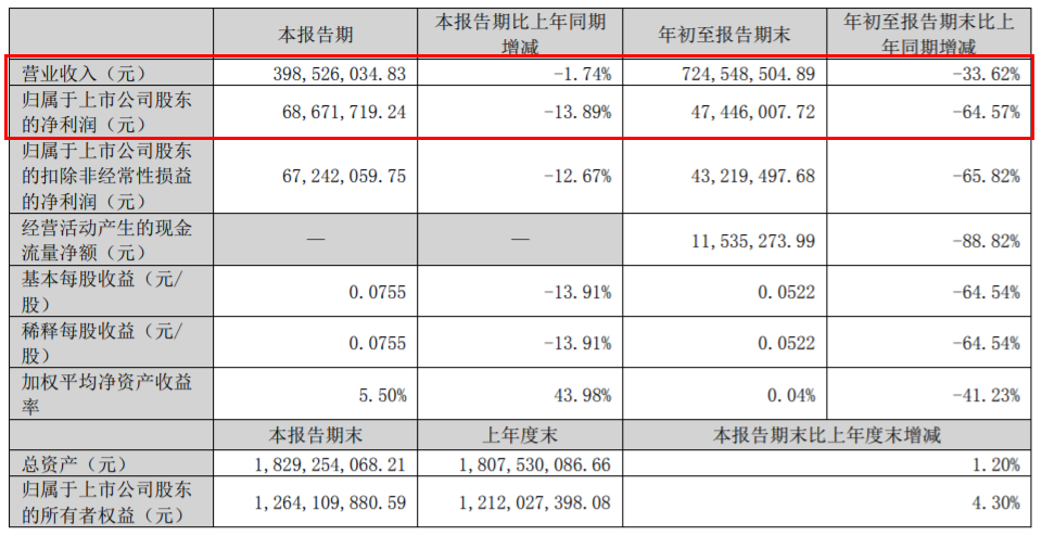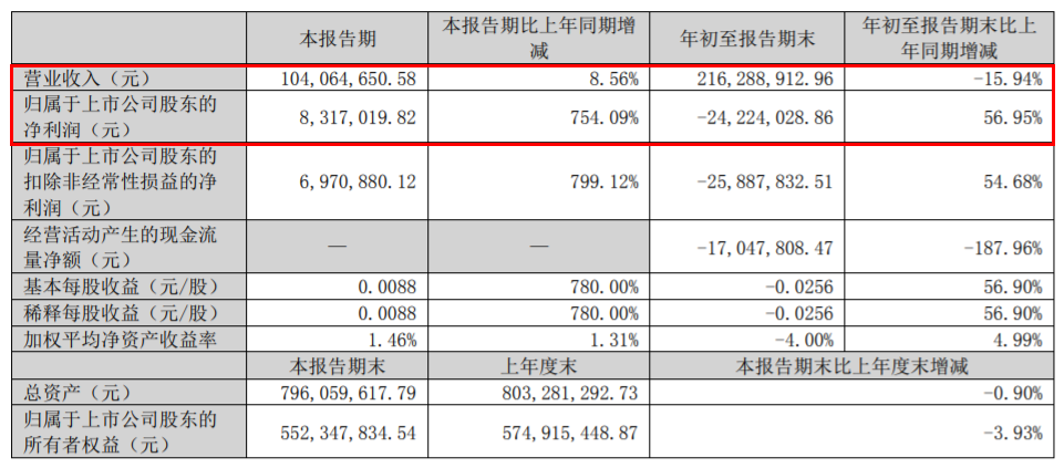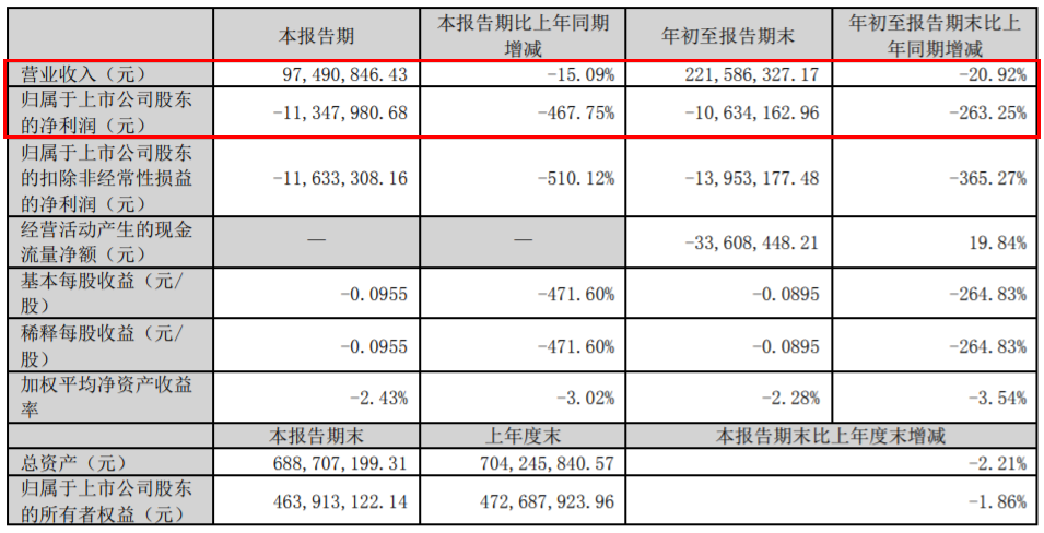 报告期内,该公司实现营业收入9749.08万元,同比下降15.09%;净亏损1134.79万元,同比下降467.75%,去年同期则盈利308.58万元,由盈转亏。