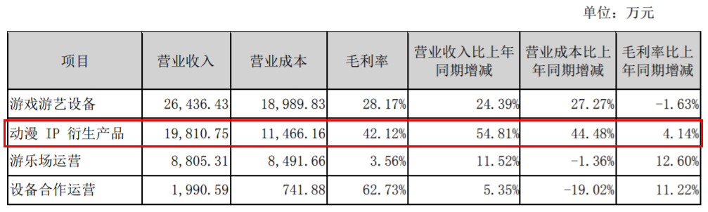 动漫IP衍生品产品配套动漫卡通设备使用,主要包括《我的世界》《宝可梦》《奥特曼融合激战》等系列产品,IP“火影忍者”衍生全新游戏游艺设备《火影忍者斗牌世界》于今年9月26日在国内市场正式上市。