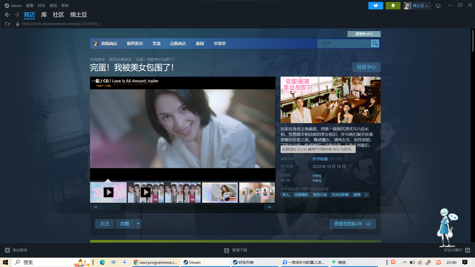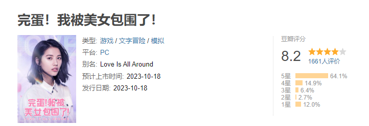 近日,一款国产恋爱真人互动影游《完蛋!我被美女包围了!》(以下简称《完美》)莫名其妙地火了。它甚至一度力压一众3A游戏,霸气登顶Steam国区的热销榜首,全球最高第4,震惊了整个游戏业界,让大家都感到不可思议。