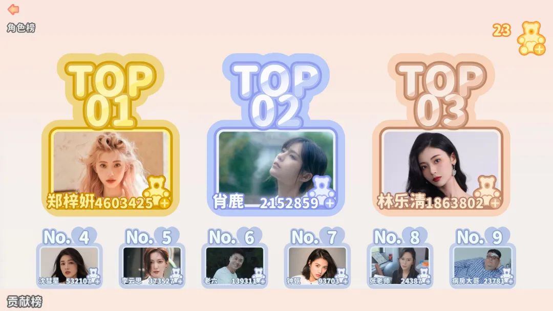 不过,茶馆翻阅了不少《完美》红火的缘由分析,不少指向游戏关键在于满足了“普通男性玩家”的基本需求。梅子酒却表示,其实游戏内有不少“富哥”,前些日子,在肖鹿的生日会直播上,其抖音礼物榜被刷到了抖音榜第三。他还向我举例游戏内小熊饼干的打榜图,其中大部分需要自己购买。而从商店来看,每块饼干需要一元。而据游戏所示,《完美》的榜一大哥,目前已投入超3000元表达支持。