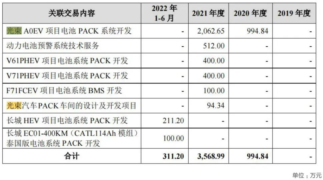 2020-2021年,蜂巢能源和这家公司做过多笔交易,比如PACK(组合电池,即动力电池的包装、封装或者装配过程)系统开发、车间设计等。
