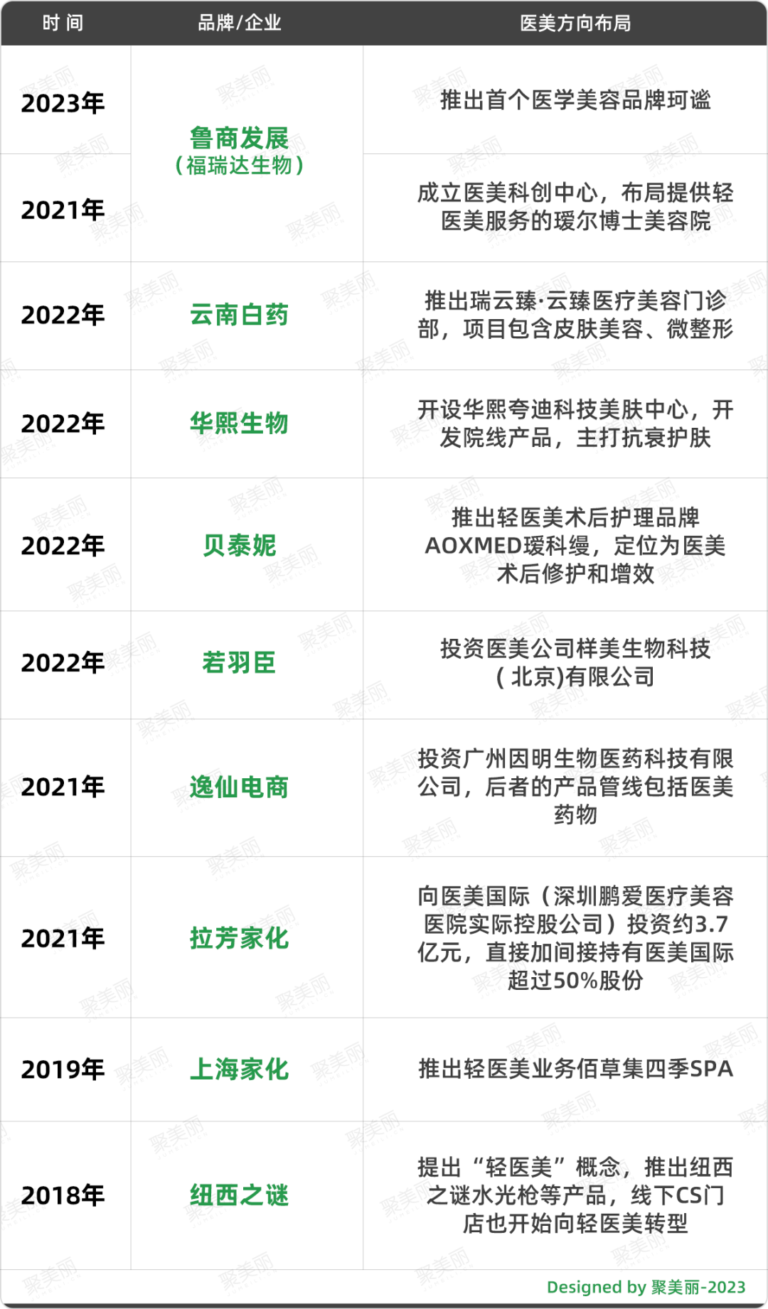 可以看到,除了投资医美上下游、线下渠道拓展轻医美业务之外,推出医学美容品牌也是国内企业的动作之一。