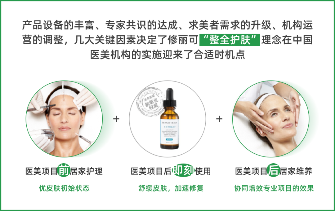不仅如此,欧莱雅旗下品牌修丽可也在医美机构推出了“整全护肤”理念。