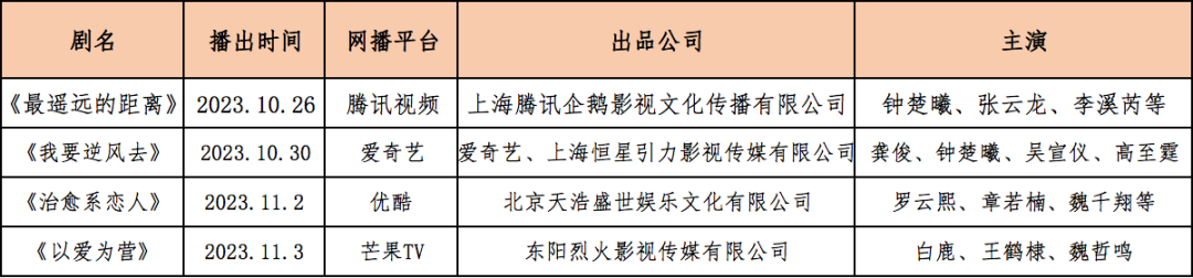 比如,《我要逆风去》由爱奇艺和去年凭借《苍兰决》出头的新锐公司恒星引力联合出品,导演赵一龙执导过《父母爱情》《琅琊榜》等多部热度与口碑兼具的作品。《以爱为营》的出品公司东阳烈火制作过暑期档热播的古装剧《长风渡》,《最遥远的距离》则由中国台湾导演于中中执导,在爱情剧领域有着丰富的经验。