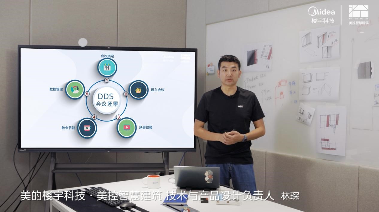 这款由美的楼宇科技·美控智慧建筑技术与产品设计负责人林琛介绍的智能化系统控制中心,相比上一代产品(传统产品)更具优势。“无感的体验很安心,无处不在智能化,又随时在身边”。它可以自动控制和管理空间内的各种设备,如空调、灯光、投影仪等,满足与会者需求;通过传感器、定时器等技术,可自动调节会议室温度、湿度、光线亮度等。