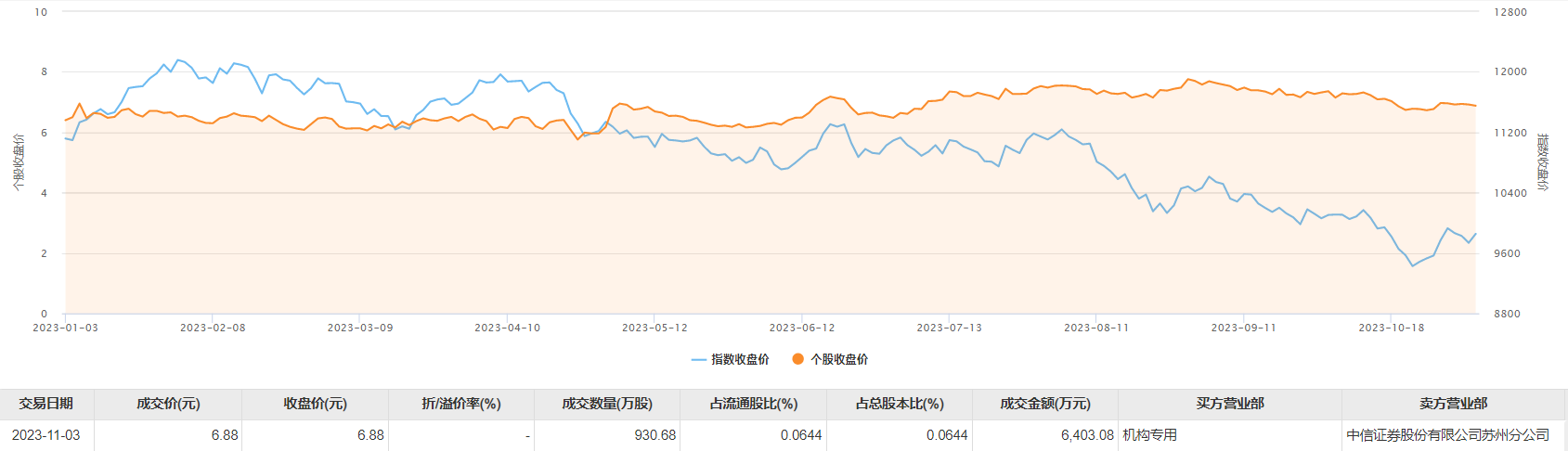 分众传媒11月3日大宗交易成交930.68万股,成交额6403.08万元,占当日总成交额的10.68%,成交价6.88元,较市场收盘价持平。