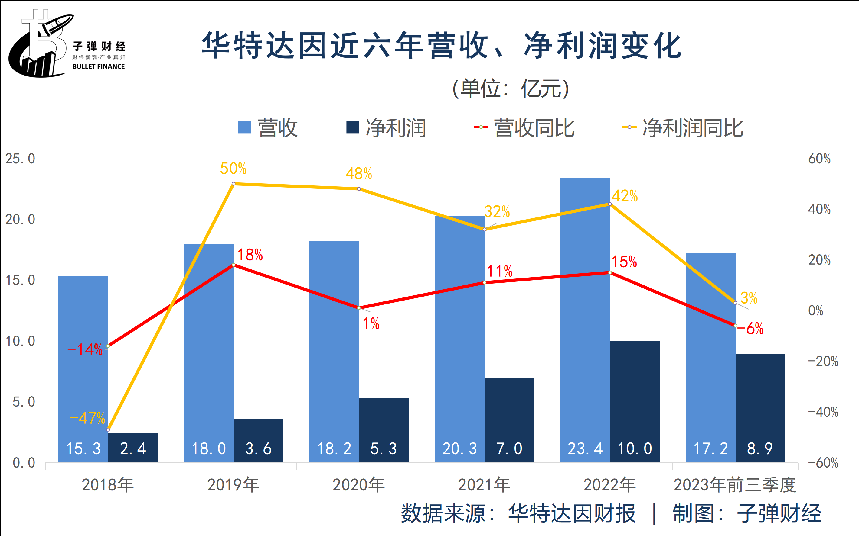 2023年前三季度,华特达因营收17.2亿元,同比微降6%。不过,净利润仍较去年同期上涨了3%至8.9亿元。