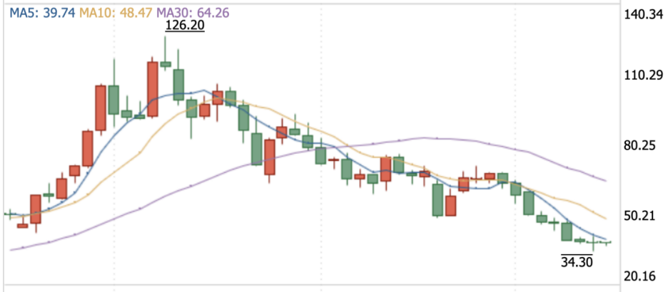 面对下行的业绩,二级市场也在用实际行动进行投票,截至11月2日收盘,海天味业股价为36.86元/股,年内累计跌幅超44%,较2021年年初的126.2元/股跌超70%。