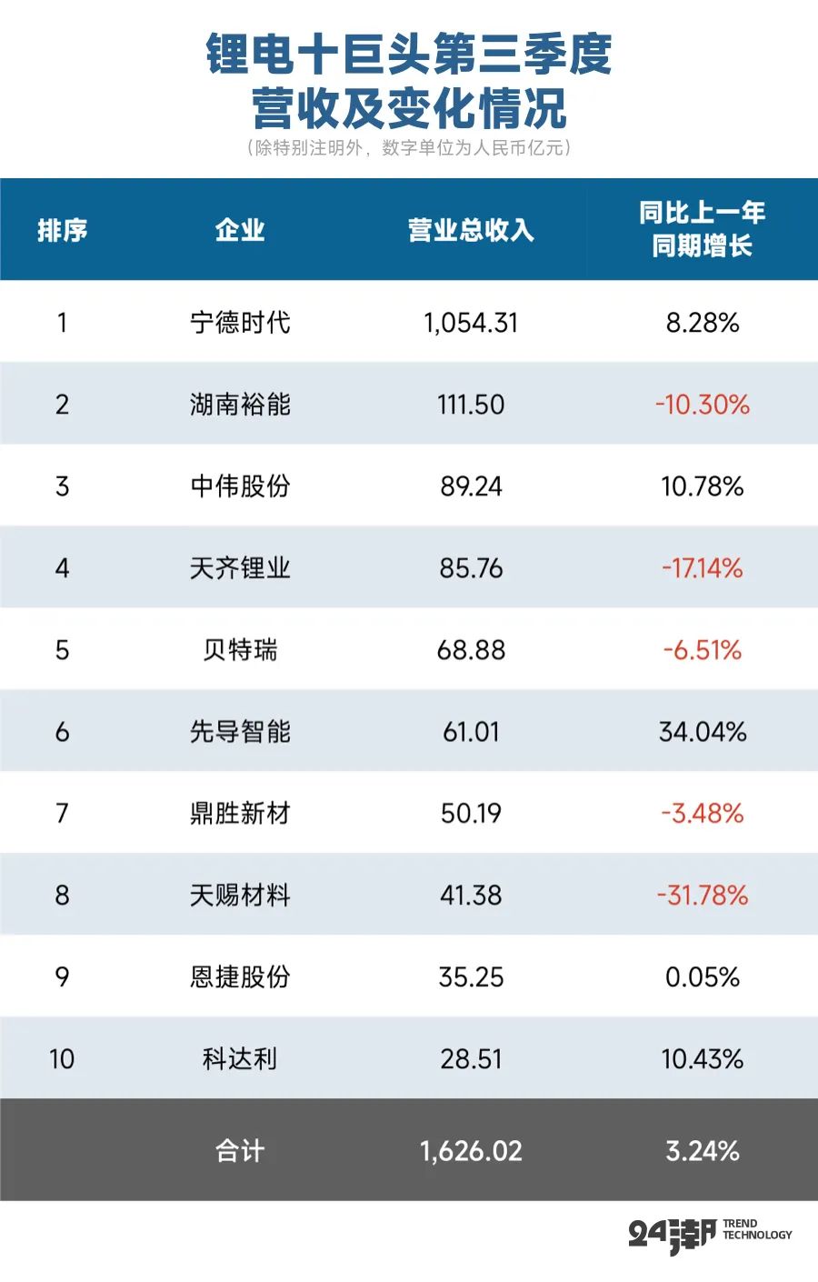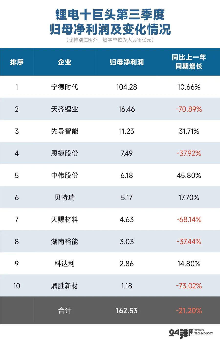 当然,也有企业仍在逆势增长,比如锂电设备龙头先导智能第三季度营业收入与归母净利润均保持30%以上高速增长,三元前驱体龙头中伟股份营收与归母净利润分别增长10.78%和45.80%。