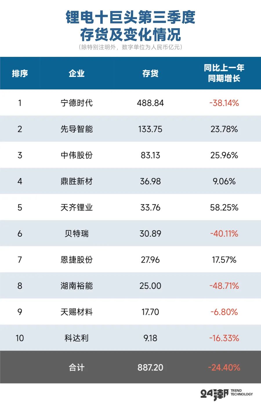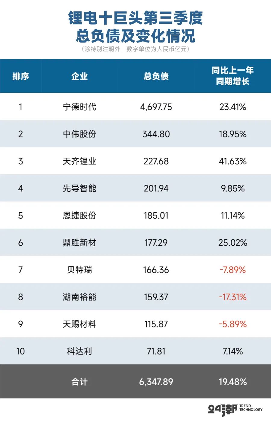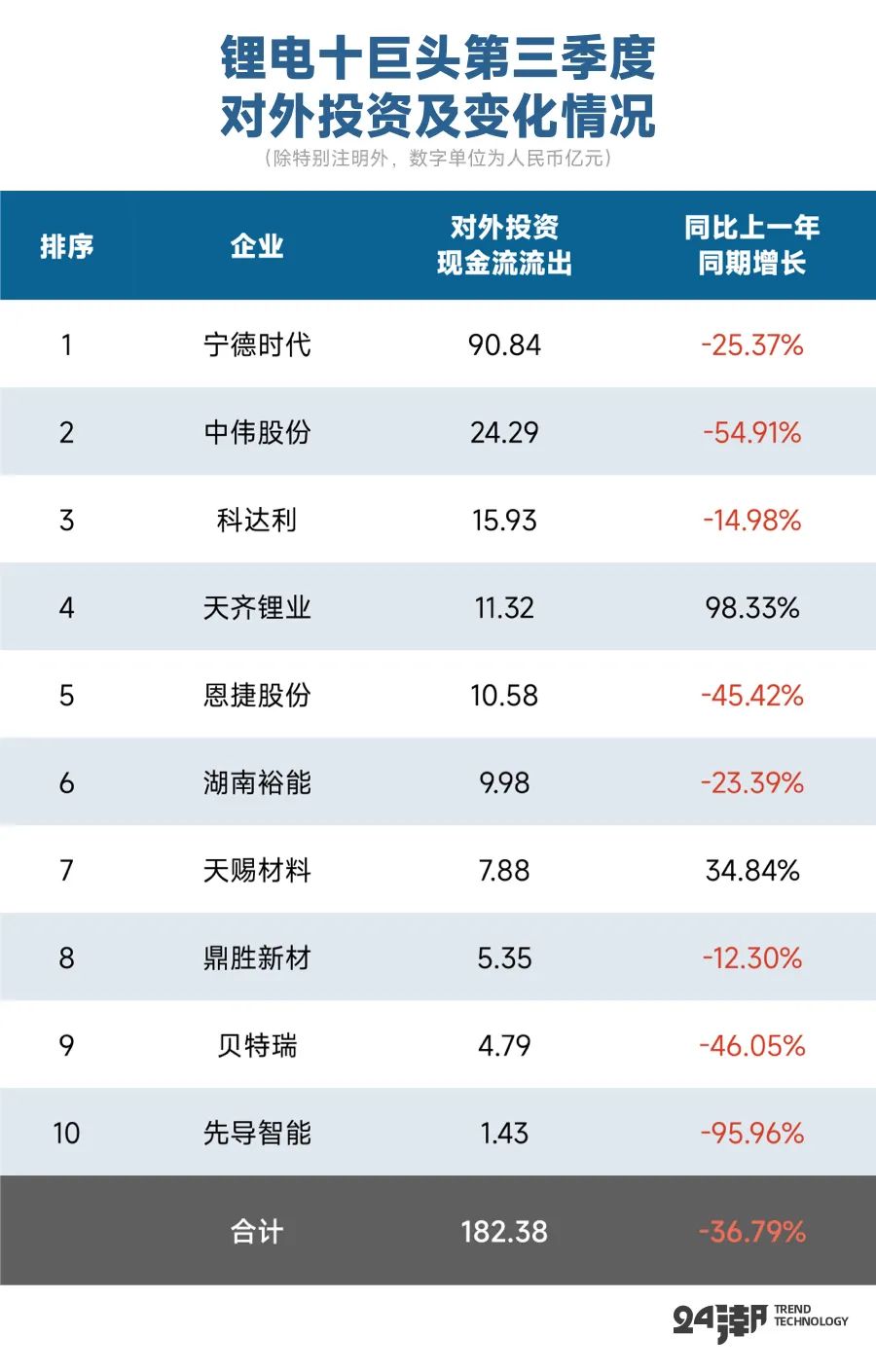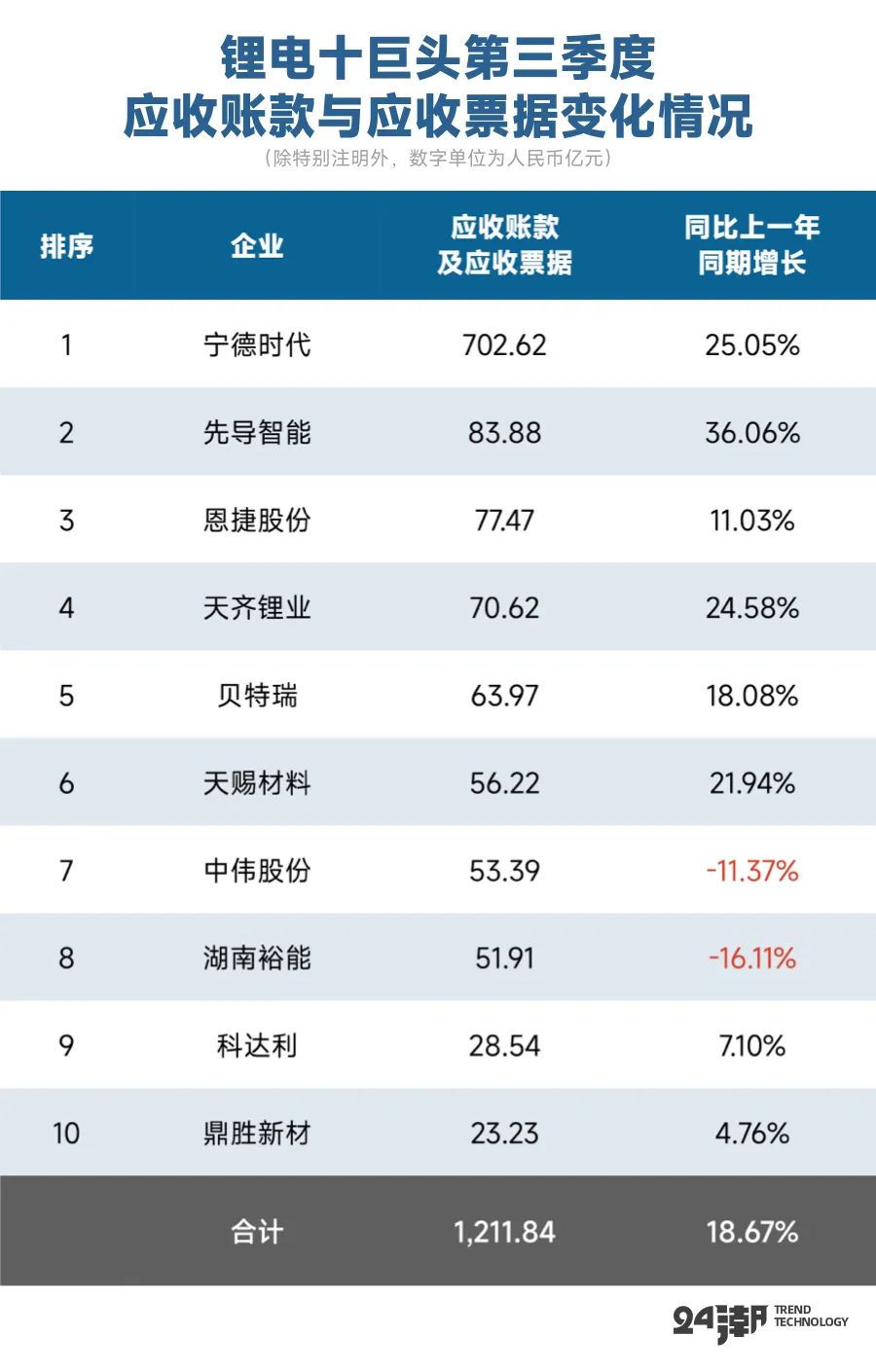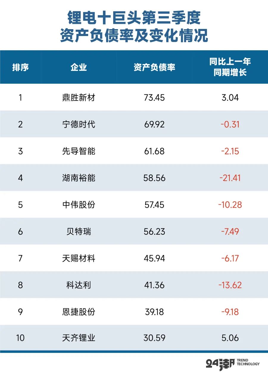 本期内容,24潮统计了锂电十巨头第三季度十几项核心数据及变化,涵盖营业收入与客户预收款、净利润、对外投资、造血与筹资力、总负债与资产负债率、资金净值、应收账款与存货、等,全面展现巨头间整体的竞争格局,以及在产业剧烈变化中企业面临的压力与挑战,供读者朋友参考。